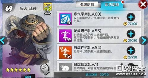 62级副本出的白虎堂陆孙,升星也挺方便,从技能来看,前排全体冰冻(减少内力回复)效果,加晕眩技能效果可以说是相当不错的,即使不能造成晕眩效果触发连招也能很好的限制敌方的开大。是一张非常好的战术卡,推荐练起来。