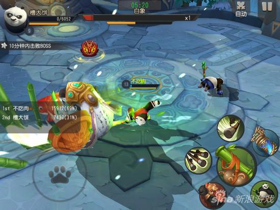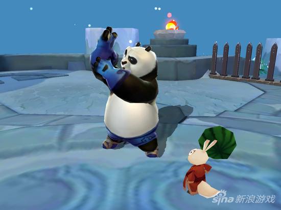 《功夫熊猫》整体影音效果在首测中已经说过,表现可谓是可圈可点。细致的描绘将武器的攻击效果表现的淋漓尽致,如绿玉棍的攻击在慢镜头下,玩家可以明显感受出武器粗细的体积变化,上下抖动效果等。本次测试战斗中闪避击、招架、背攻频频触发,以及浮空、内伤等属性攻击都有明显的文字提示,相信的战斗体验更好。