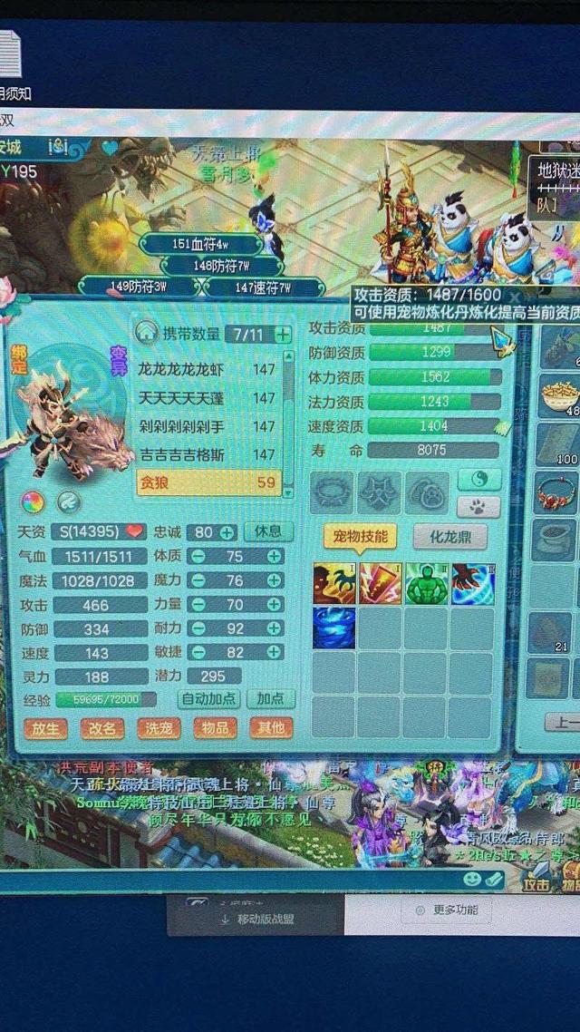 贪狼虽然是飞升125级的宝宝,但是它自带的噬风斩不论是点杀辅助还是法系都十分的强力,所以即便是150级玩家的PK活动中也是人手必备,这只贪狼的攻资高的可怕已经是1600的满攻了,带上饰物以后体力和速度资质也一定超过了1600,还是最高成长红心,由于力量点数对噬风斩的影响很大,黑脸妹建议配合吸血、保命、毒、偷袭和气势这几个技能最佳,再带上健魄的魂玉增加血量,很有可能PK场上就是一刀一个大魔王了。怪不得评论都在说这种引起不适的宝宝禁止发出来!