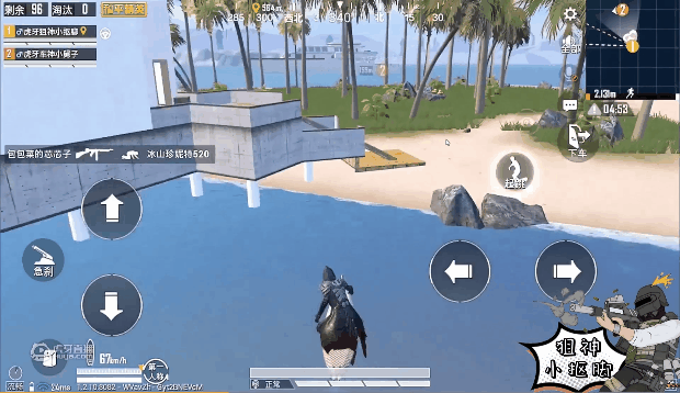 刚看到海岛上的装备,小抠脚就准备“刹车”拾取装备,却直接触发了光子的“飞天挂”,直接起飞了。瞬间飞越了整个海岛,错过了眼前的装备。小抠脚也被吓了一跳,自己也没有什么操作,怎么就飞了,于是赶紧掉头返回小岛。