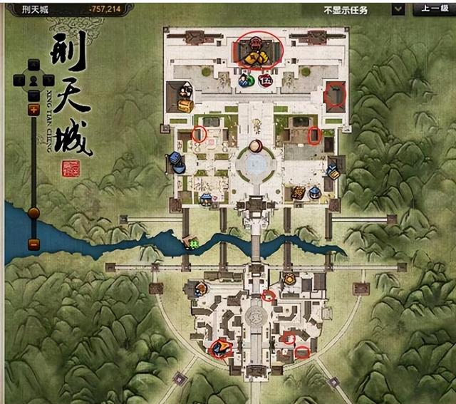 需要注意的第一点是,刑天城的任务并不是只有刑天城才能参与,所有的人都可以去跑,注意是所有人!被自己就劝退了,图上标记好的是任务点,掌门和一旁的是三个任务,每一个都有四十个牌子,然后下面是五个,正正好一百五十个牌子,就问你舒不舒服了。