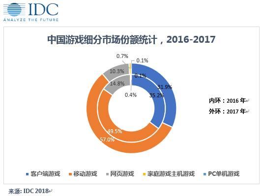 近日,IDC发布了一份有关2016-2017年中国游戏细分市场份额统计的报告,根据其中的数据显示,移动端游戏已经占据了我国游戏市场过半的份额,并且还在上升中。