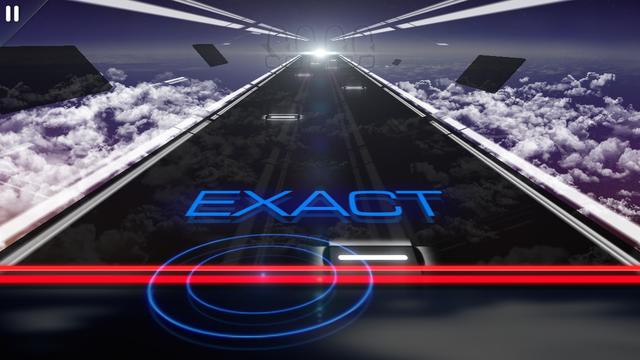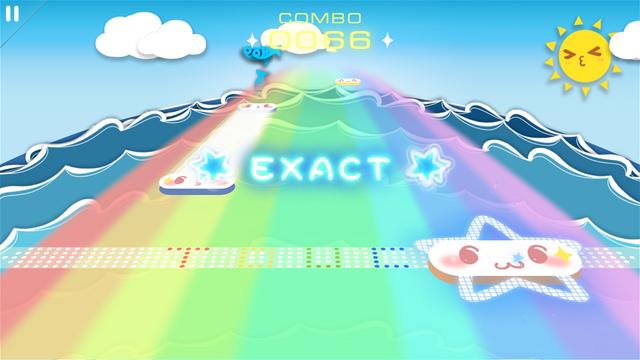 由廊坊同步音律信息科技有限公司制作,和大多数音乐类游戏一样,不同的是场景特效有6种,电子隧道,彩虹,水墨,儿童画,云端,像素,而且在演奏的不同阶段场景也在变化,可以说带来的是听觉和视觉的双重享受。游戏分为简单,困难,部分音乐有地狱难度,十分有趣。