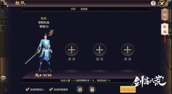 《剑荡八荒》有着极其便捷的组队系统,在左侧任务栏,可以打开组队系统,点击前往组队按钮,便可进行快捷组队。玩家可根据自身需求,如特定副本、特地地图等寻找自己需要的队伍,申请加入;也可以自行创建队伍,邀请好友或他人加入。在组队界面的下方,可以设置组队模式,选择是否自动同意他人邀请、是否自动同意他人加入,以及进行队伍消息设置和招募队伍成员等操作。
