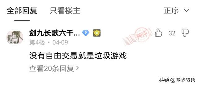 关于这个问题,玩家们的看法基本上都是偏向于开启自由交易系统的,表弟也不列外。因为如果无法自由交易,那么就如这一句神评所说,“没有自由交易就是垃圾游戏”。