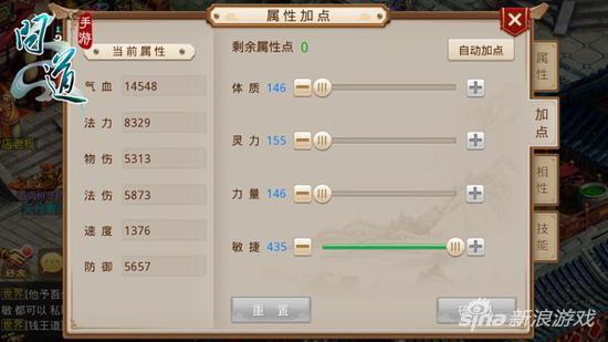 扩展资料:《问道》讲述封神榜敕封千年之后,截教通天教主暗助被太乙真人打回原形化为骷髅山顶一块顽石的石矶娘娘复生,令其广收门人,招揽人才,并拉拢人道、西方教派等势力,趁仙界大劫降临之时,准备再次与阐教决一死战的故事。光宇旗下2D回合制网游---《问道》是国内少数同时在线超100万的网游之一。连续十年获得“最受网民欢迎的游戏”和“最受欢迎的民族网游”奖。在2D回合制网游中,《问道》凭借其优良的画风,和独具特色的各种系统,吸引了数千万玩家的青睐,成为国内2D回合制游戏的标杆。全敏火,在参加试道,队伍实力相当的话,先手赢的概率是很大的,敏火是非常关键的4敏:速度+力量,速度够快,累加的攻击能力也是相当惊人的!相性加点:推荐先火相性、后土相,火相性也是最求极致的速度,土相能增加人物物理攻击,因为附魔的时候要带土套附魔!这样效率会提高很多。