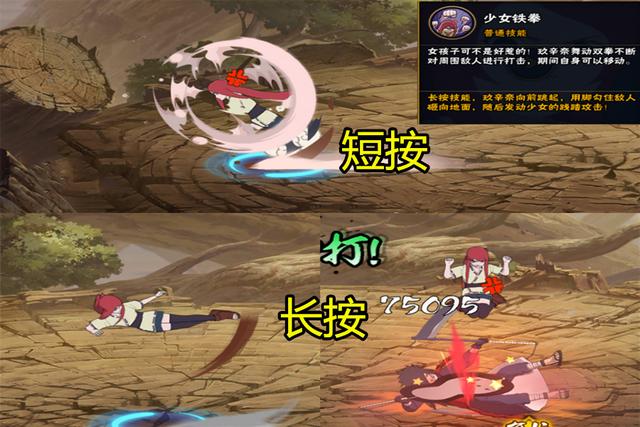 少女玖辛奈作为18元限购忍者,和少年自来也一样普攻具有特殊机制!如果单纯按普攻,玖辛奈最后一记攻击会是上勾拳。但如果你想要让普攻具有抓取效果,你可以在点击普攻的同时,下拉方向键就能抓取敌人,旋转丢出。在某些时候,她的普攻能排上大用场(能抓奇拉比弟弟化