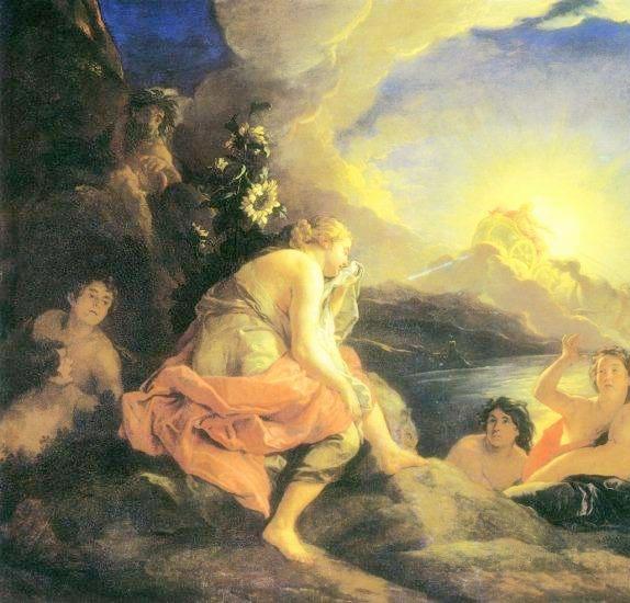 情人中比较著名的是变成向日葵的海洋女仙克吕提厄。她曾是赫利俄斯的情人,但多情英俊的太阳神又爱上了波斯公主琉刻托厄。嫉妒的克吕提厄随即向琉刻托厄的父亲波斯王告发了她与赫利俄斯的关系。愤怒的波斯王将不贞的女儿活埋,赫利俄斯为此彻底断绝了与克吕提厄的关系。痴情的女仙悲伤不已,每天不吃不喝凝望着赫利俄斯巡游的日辇,最终化作向日葵,永远仰望着太阳所在的方向。