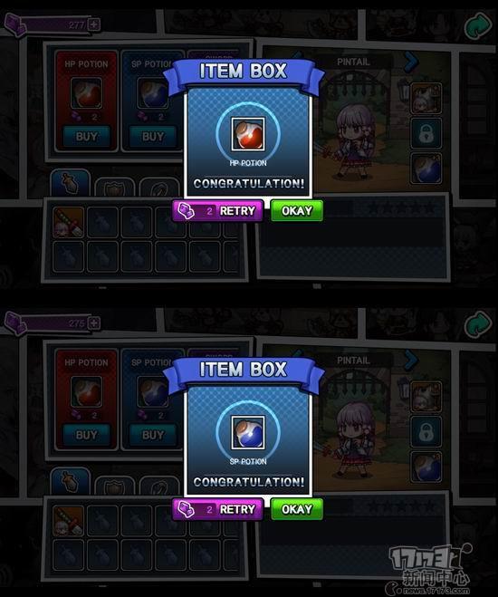 只有药水当然不行,还要买一套强力的装备才行,花费10钻石即可随机获得一件此角色的专属装备,随机出现武器、盔甲和戒指中的一件,如果出现重复的装备就会自动强化成“+1”,目前还不知道这个强化有没有上线,Tribble根据前面的机制来推敲,应该没有……
