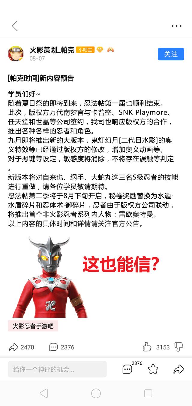 然后,很多玩家为了调侃,也是P了一个奥特曼上架的图片,最关键的是,这个图竟然还有人信了,并且相信的人还不少,我都不知道该说什么好了。