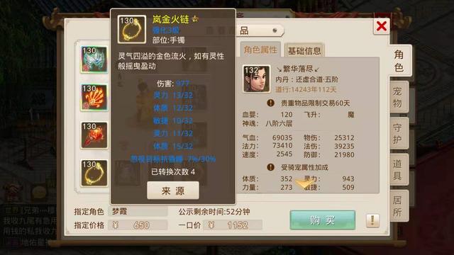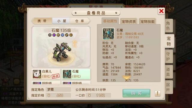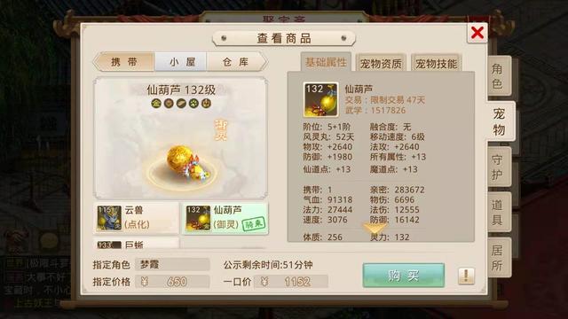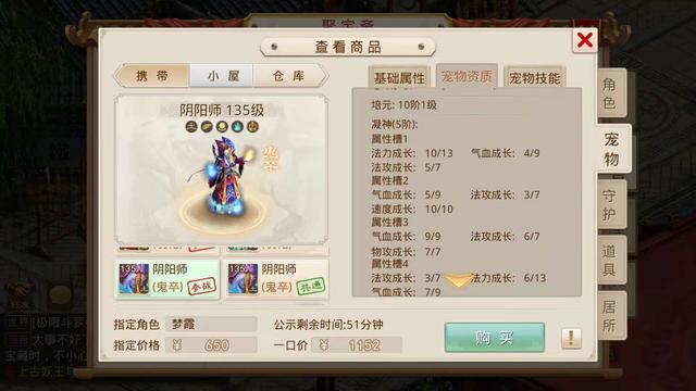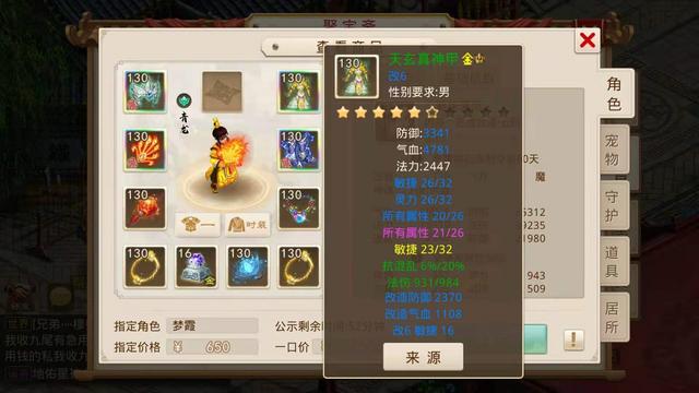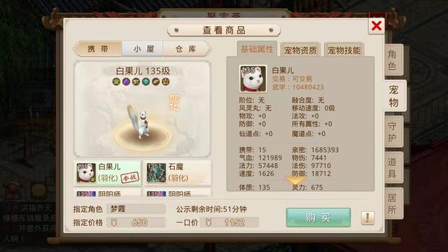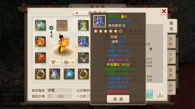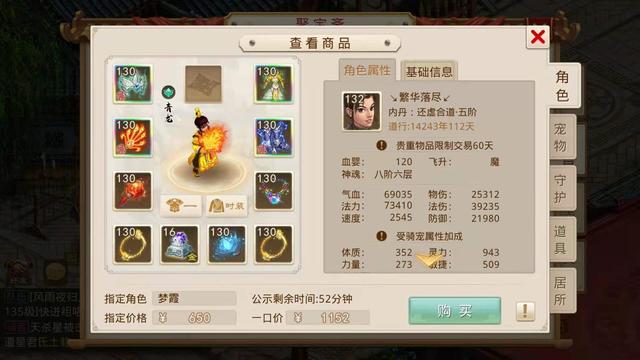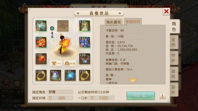当时小鹿听到这个要求觉得不好办,毕竟我们之前看的那些号底子也就是没有装备宠物的空号都得一两千,所以只能每天逛聚宝斋的时候帮她看看,碰碰运气,不想在前天还真找到了一个合适的角色,花了650元指定了,让我们看看这个号具体怎么样。