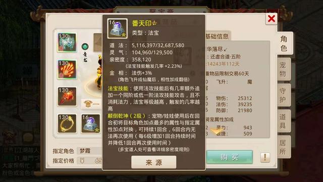 小鹿多次强调问道手游看号和梦幻、大话、神武什么的不同,一定要先看人物道行,就像梦幻看角色先看人物修炼一样。这个角色是个132的火系,有1.4万年的道行,这是个两年以内的区,光看区里大部分130级号没有到135满级就知道了,所以说这个道行已经不低了,能满足日常了。