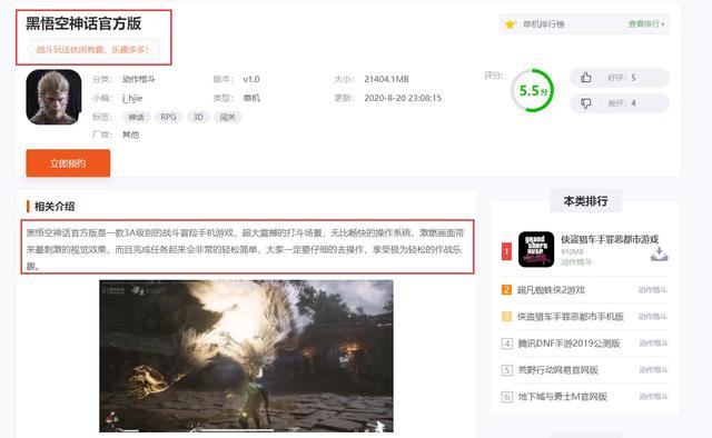 我在搜集资料的时候,发现了一个事情啊,居然有一款名叫《黑悟空神话官方版》的手游,当时,我第一个想法就是“纳尼”黑神话悟空原来是一款手游啊,根据相关介绍显示是一款3A级别的战斗冒险手机游戏,超大震撼的打斗场景,一看图片,这不就是黑悟空当时的宣传图片,怎么变成手游了。