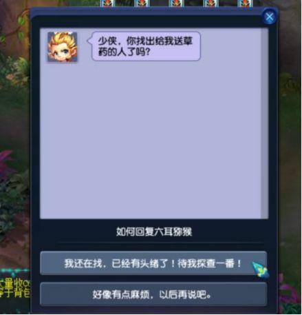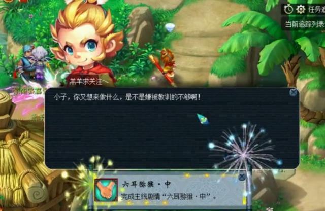 跟热心少侠对话后,进入剧情动画,同时六耳猕猴中篇即可完成。
