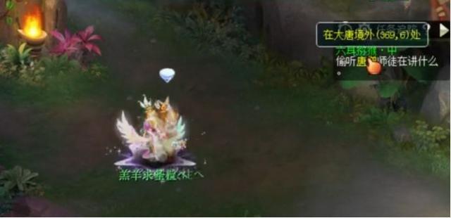 首先,找到位于境外369.6处的唐僧。注意:带一份翡翠豆腐或者臭豆腐在身上,一会有用,不用再去买了,毕竟境外挺远的,来回来去的浪费时间。