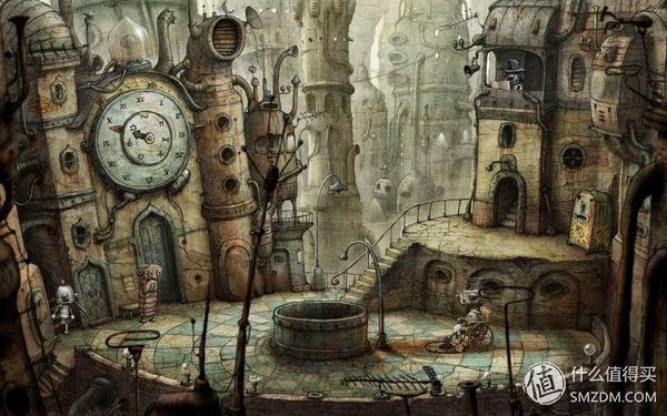 游戏采用2D背景和人物,没有文字对白,但《机械迷城》的游戏时间将更长更复杂,游戏画面全部由手工绘制。