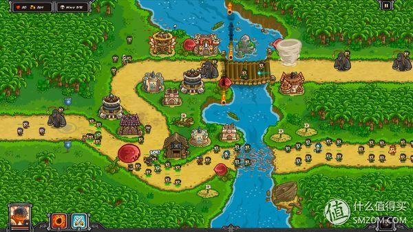 同时特别的是这个游戏引入了英雄系统,可以通过点击让英雄去某个线路拦截敌人,也可以施放魔法,定点放置“伞兵”,而不是完全通过造塔来防守,这让整个游戏的操作性和可玩性大大上升。
