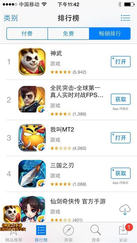 【《神武2》手游AppStore畅销榜排行前三截图】