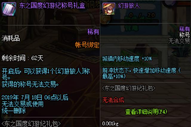 称号礼盒也是账号绑定的,不过这一个称号我感觉就是用来搞笑的,因为没有任何的伤害属性加成,只有一个城镇移动速度增加10%,在副本中前冲状态下增加10%的移速,我不太清楚移动速度除了在代号希望中有点用外,还有什么特别的作用呢?