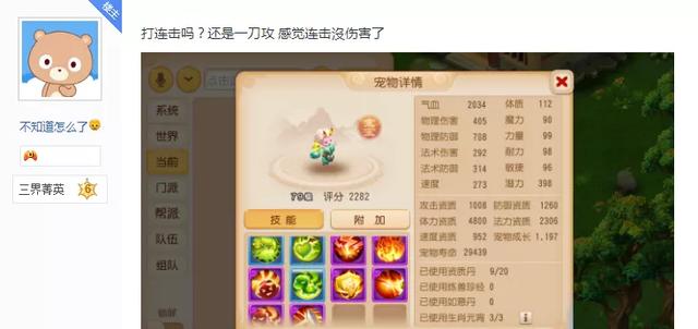 我们都知道高级连击是攻宠技能配置中一个常见的技能,进行攻击时有55%的概率连续两次普通物理攻击,在进行日常任务与难度挑战时表现非常强势!但拥有此技能物理伤害结果会降低20%,在擂台竞技时许多宠物都会搭配高级反震与高级反击技能,在攻击时不会被连击,所以高级连击技能就难以发挥作用,并且会造成物理伤害结果减少,难以发挥宠物本身实力,这名玩家也就纠结于此。