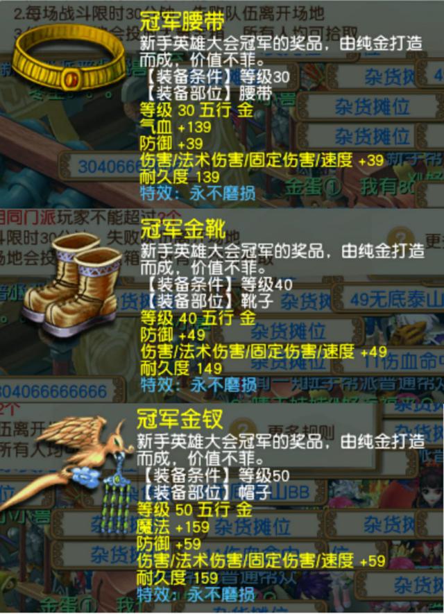 夺得了三天的冠军之后奖励可不少,这冠军不磨腰带,冠军不磨鞋,冠军不磨发钗和其他装备都不一样,他们有另外的属性加成!不管是谁,获得了这样的装备,在新区都是有如神助。而且它们还非常有纪念价值!
