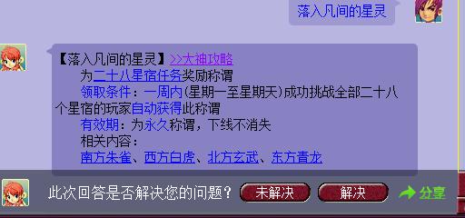 想要获得该称谓,条件是:击杀全部28个不同的名字的星宿。