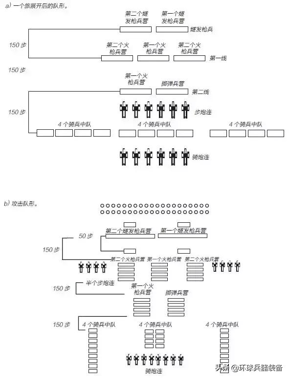 这两幅图还展示了在骑炮兵附近部署小队骑兵,既保护骑炮免遭攻击,也能够伺机攻击敌军战线侧翼。