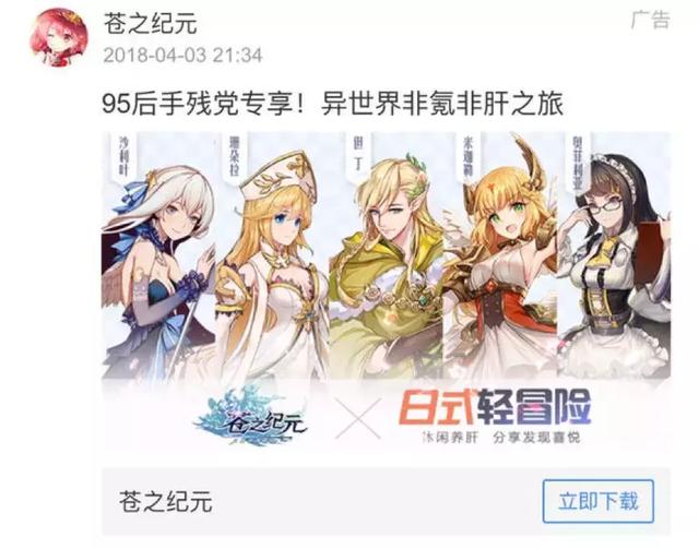 事实上,《苍之纪元》广告推广的方式与传统买量吸引的用户有很大不同,游戏的广告词偏向突出角色属性、游戏CV的深度内容,具有浓厚二次元风格的美术画面等等成为游戏广告重点宣传对象。
