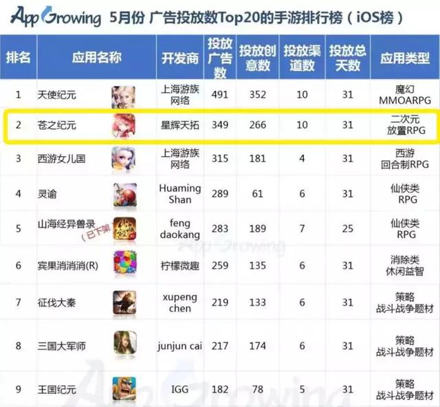 《苍之纪元》在广告投放数量上排名第4,