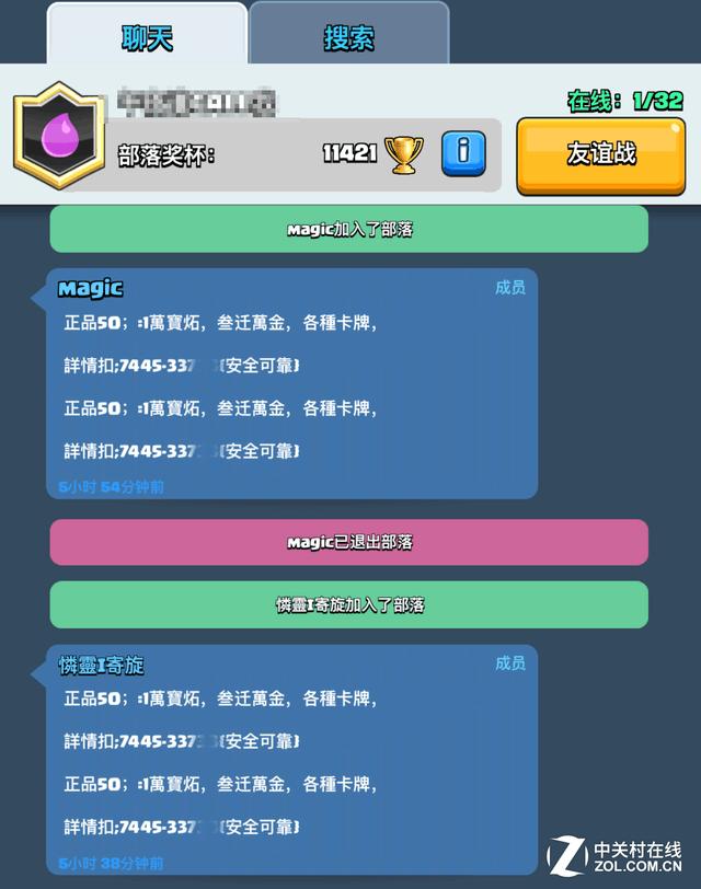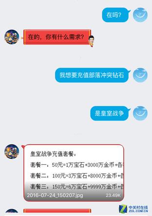 《皇室战争》的玩家应该深有体会,在游戏前期,推掉高于自己等级的玩家是何等不易,可很多加入时间较长的玩家偏偏喜欢在低阶战场虐菜,而我正好是这里的菜,玩了10局对战,输掉8局打平2局,这样被虐心情可想而知,我的怒火彻底被点燃了,做出一个决定:做一回人民币玩家,但又不想为游戏多花钱,正好看见部落群内有游戏充值的广告——“50元=1万宝石+3000万金币+各种卡片,请联系QQ:XXX”,经过与官方商店价格对比,心想:这样的价格简直是占大便宜了。