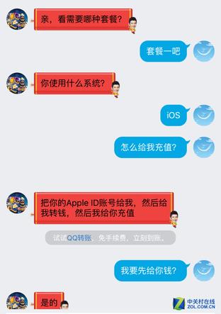 经过一番周旋,商家说:我给你一个Apple ID账号,你登录到iCloud和Game Center上面,查看该游戏账号是否是充值成功的。心想试试又何妨,因为一心只想“充、充、充”,没有想别的就验证卖家提供的账号,悲剧发生了!当我刚在iCloud里面登录他提供的Apple ID账号,Game Center还没来得及登录,iPad已被锁住,这时我才回过神儿,WK上当了!iPad上收到信息显示:想要解锁,请联系QQ:XXX,输入刚才的密码,发现已经不正确。等我再联系卖家时,他已不是我的好友,再次添加未被同意。