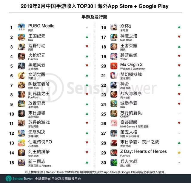 近日,Sensor Tower 商店情报平台发布了19年2月份成功出海的中国手游收入榜单前三十名的游戏。今天魔王就给各位分析一波!
