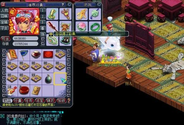 梦幻西游在每年的时候都会举行一次梦幻的春晚,梦幻的春晚是先从梦幻玩家中抽取一定数量的玩家,将他们聚集在特定的梦幻春晚服务器,在该服务器中系统会发放特别多的奖励,这里面获得的物品都是可以拿到原服务器的,上面的这位玩家就在梦幻春晚中抢到了一个豪华宝箱,还有八个普通的宝箱,在这里面都放着大量的的物品或者梦幻币奖励。