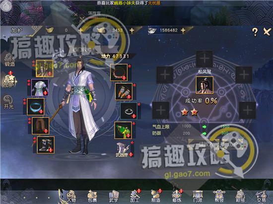 1.装备锻造,用玄石、银两以及锻造材料对装备进行锻造,来获得装备基础属性提升。