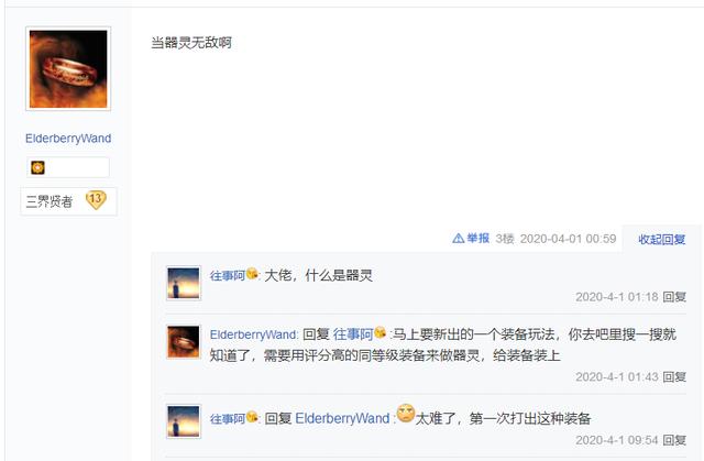 也有玩家给出新的建议,游戏中很快就要上线装备进阶的器灵玩法,属性如此优秀的武器拿去器灵淬炼也是不错的选择,在器灵淬炼时所消耗的装备评分越高,器灵的属性就会越好。