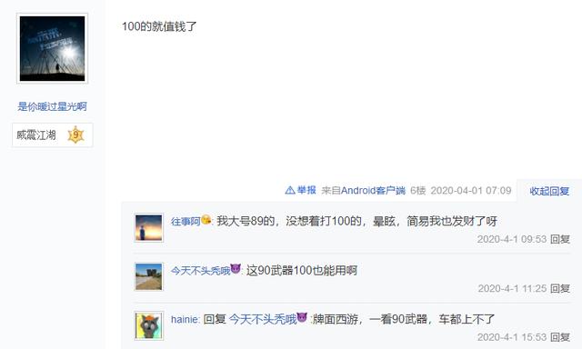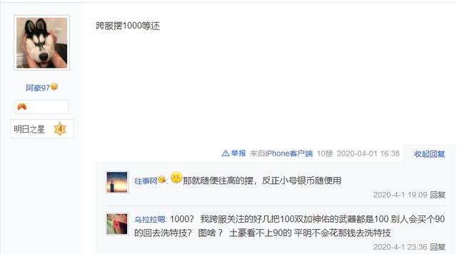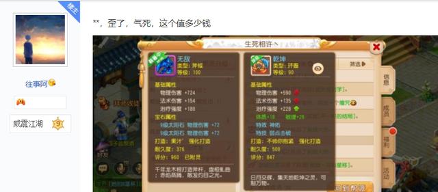 看到该玩家询问价格后,有网友表示先摆上1000万金币然后等还价,但是也有网友觉得这件武器卖不出太高的价格,能买极品100级武器的玩家是不会关注90级武器的,而且普通玩家也不会花如此多的钱去购买,并且买回去还要自己洗特技。
