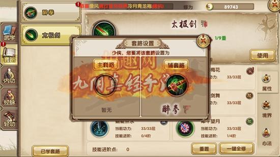 这时候只要选择自己要切换的武学套路点击使用,会跳出一个套路设置的界面点击主套路就完成套路的切换了。如果要切换2个套路的话必须要1个套路1个套路的换而不能一次性换2个套路这是要注意的。