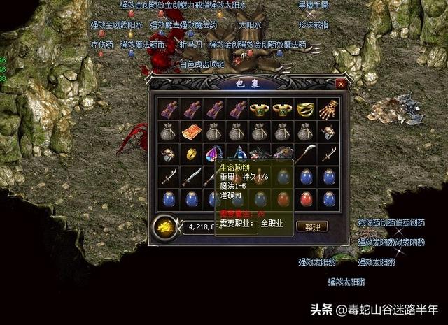生命项链被发现!哈哈哈,终于又出货,黑锷蜘蛛是个好同志!虽然是个不怎么值钱的物件,但是当天一人分个4YB还是可以的!看到右上角的《沥沥细雨》了吗?你说你,穿这么厚重的天师长袍,怎么能跑得过老蛇的幽灵战衣呢?唉,一切都是手法。装备是浮云,手法很重要。