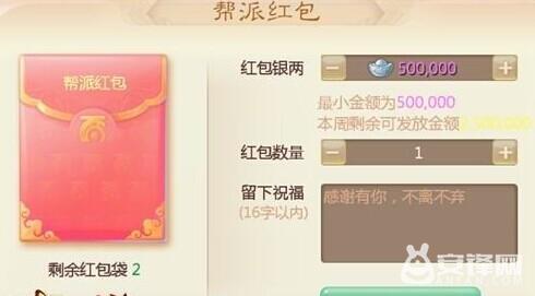 在帮派之中达到一定的条件(帮派等级、活跃度、人物等级)就可以领红包袋了。这里的红包袋是发红包的必须品。