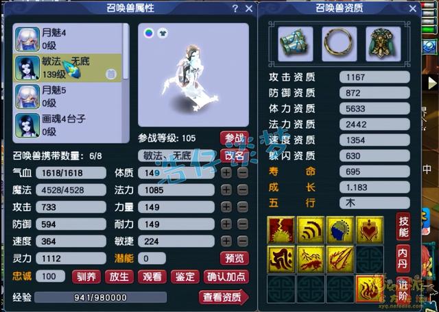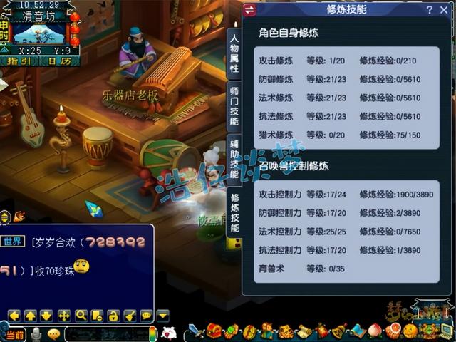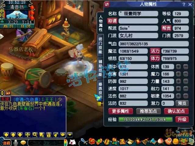 人物修炼全满了,宠修法伤满了,其他几个都是17。129级很多任务都可以带须弥速推,所以前号主先点满了法修,任务更效率。