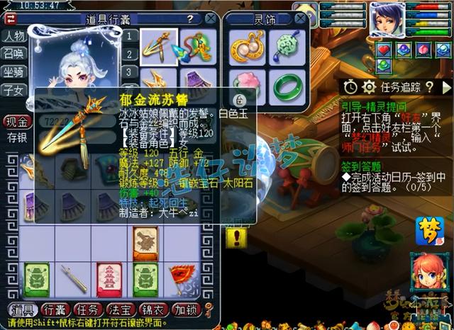 120级起死回生女头,打了5锻太阳石,普通任务装备,打太阳石可以增加固伤,而且起死回生还能拉人,任务很好用。
