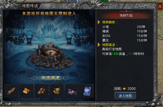 一、地狱烈焰怪物刷新: