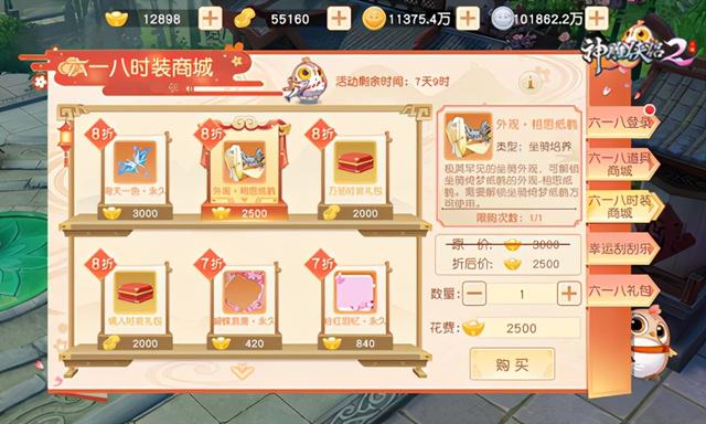 在一年一度的618活动中,最令大侠们期待的莫过于限定时装商城。在这里,不仅有全新时装登场,更有绝版外观返场。比如这一期中,坐骑绮梦纸鹤的罕见外观相思纸鹤,大家是不是期盼已久?还有昔日万圣节、情人节时装再度降临神雕江湖。遗失的美好,如今再次出现在眼前,大侠们可千万不要错过呀。