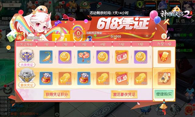 时值年中,今年的端午与“618”如此临近,所以在神雕江湖中可谓是双节狂欢。这两个备受大侠们瞩目的节日在游戏中同步开启,其中“618”活动将延续到6月22日。在此期间,大侠们每日登录,即可领取高额凭证积分,以此在618凭证中更快升级。保证每日登录,快人一步拿到全新凭证奖励不是梦!