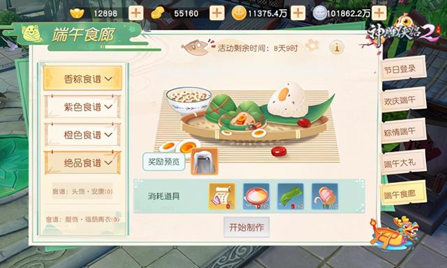 与此同时,大侠们也别忘了端午活动仍在热闹进行中,如果尚未拿到端午食廊中的绝品食谱也不要气馁。如今在神雕江湖中,参与一份日常,可以获得端午与618两份活动道具,怎能错过?