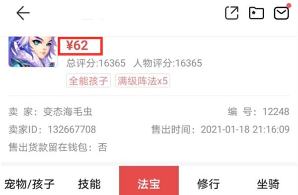 对于这位“62”出售自己梦幻号的玩家,他也只能接受结果,希望以后这样的事情不要再次发生。玩了这么久的梦幻手游,各位玩家是否真的在藏宝阁上捡过漏呢?针对这一情况,欢迎各位玩家在评论区分享自己的经历。