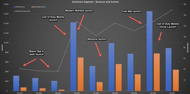 图中蓝图代表动视营收,橙图代表营业利润,曲线代表MAU
