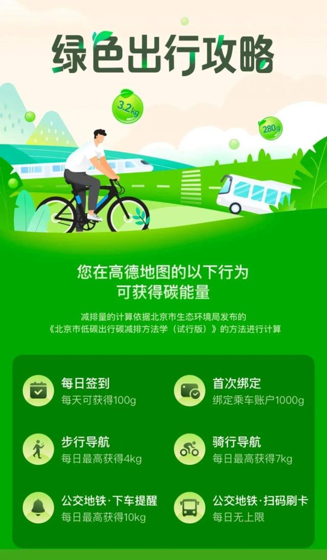 除乘坐公交、地铁可获取碳能量外,使用步行导航、骑行导航、公交地铁下车提醒也可以获取碳能量。