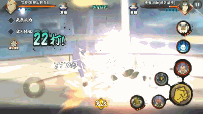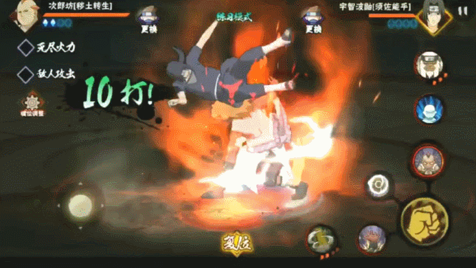 普攻五段攻击伤害又足,招式又稳,分身可以用来远程消耗还兼具Y轴优势,和本体一起攻击更是能打出双倍伤害,而且不知火玄间的手感相当舒服灵活,青和秽土次郎坊与之相比,在手感体验方面就要略像笨重了,总之这忍者还是很耐玩的。