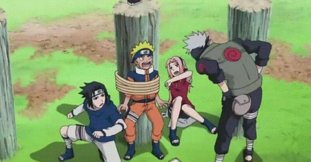 说回正题,当年的卡卡西第七班测试时候,不知道大家还有没有印象,佐助和小樱作为主力攻击,鸣人从背后突袭,于是出现了第一招传承多年的木叶终极体术奥义-千年杀。可以说是把他们三个下忍虐惨,鸣人更惨直接绑在柱子上,没有饭吃,还好佐助和小樱人好,喂他吃东西!